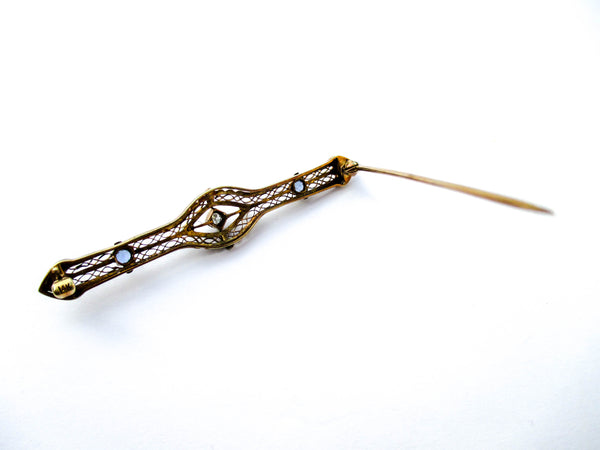 - Accents / Features: Very antique style of the early 1900s. The filigree bar pin is a resemblance of the style during the Edwardian and Art Deco period.