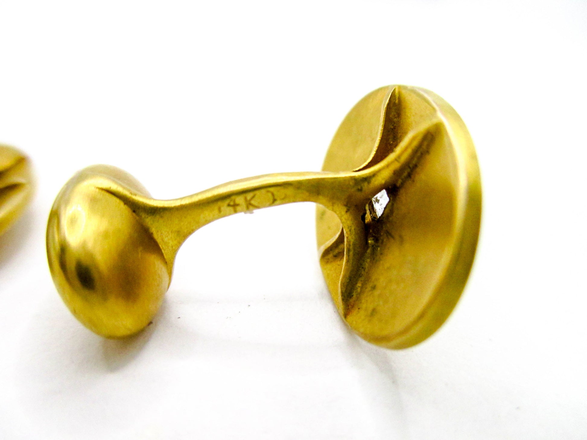 Design - Krementz 14K Yellow Gold Cufflinks White Spinel Centers